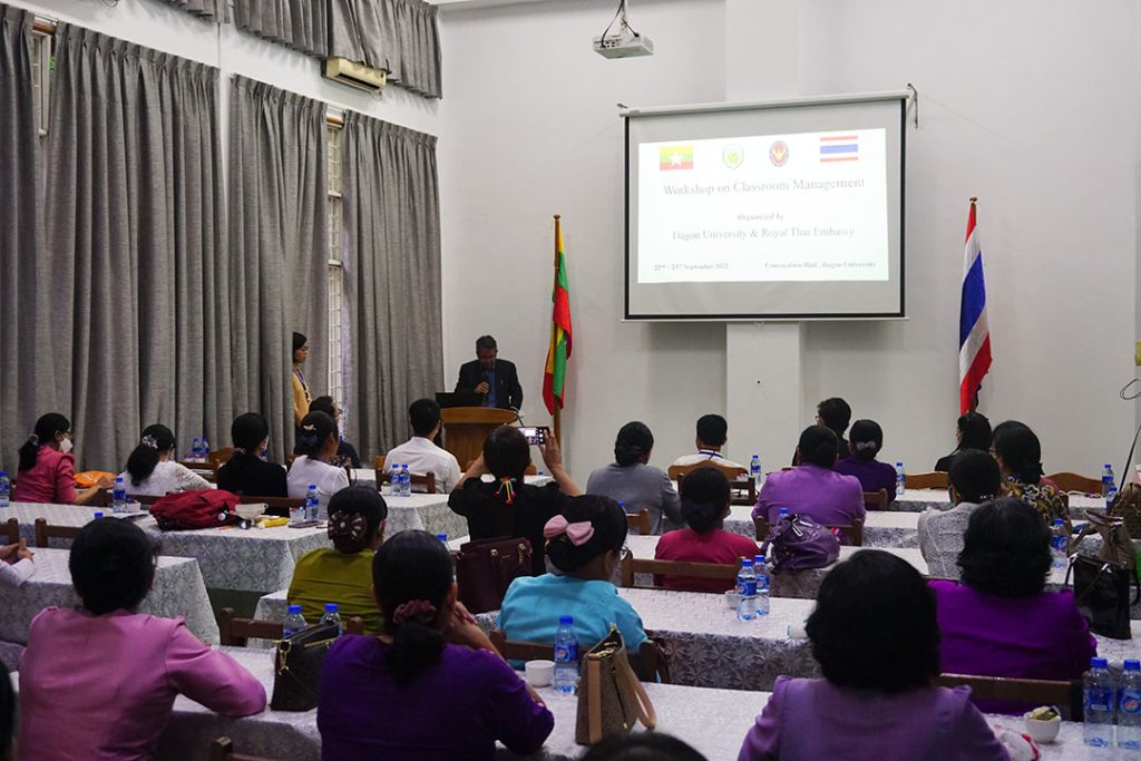 ဒဂုံတက္ကသိုလ်နှင့် မြန်မာနိုင်ငံဆိုင်ရာထိုင်းသံရုံးတို့ ပူးပေါင်းကျင်းပသည့် Classroom Management သင်တန်းကို(၂၂–၉–၂၀၂၂ မှ ၂၃–၉–၂၀၂၂)ရက်နေ့တွင် ဒဂုံတက္ကသိုလ် Conference ခန်းမ၌ ကျင်းပခဲ့သည်။