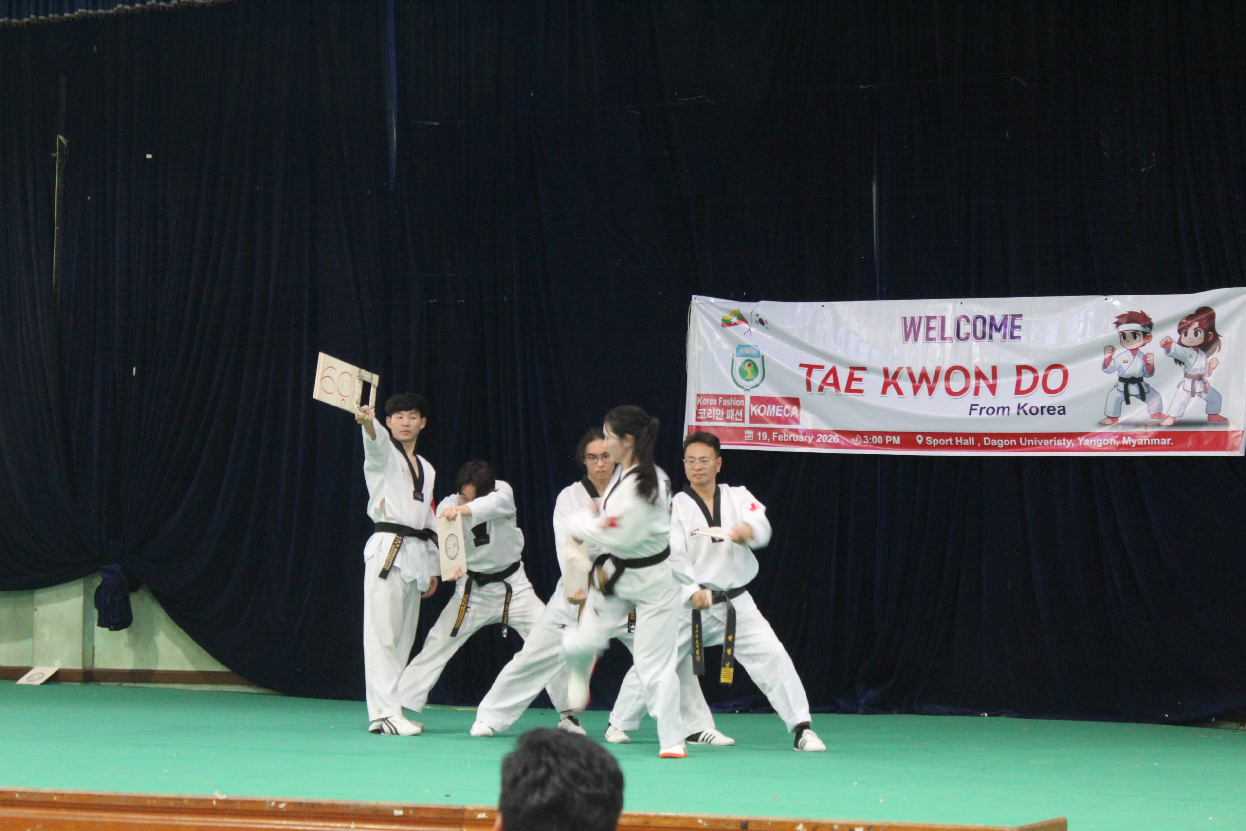 ကိုရီးယားချစ်ကြည်ရေး Tae Kwon Do သရုပ်ပြပွဲအခမ်းအနားကို ၁၉-၂-၂၀၂၆ ရက်နေ့တွင်ဒဂုံတက္ကသိုလ် အားကစားရုံတွင်ကျင်းပပြုလုပ်ခဲ့ပါသည်။
