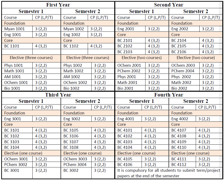 Students who passed second year with GPA ≥ 4 are eligible to attend B.Sc. (Honours) classes for three more years. After finished successfully, they are earned B.Sc. (Hons) degree majoring in Biochemistry.
