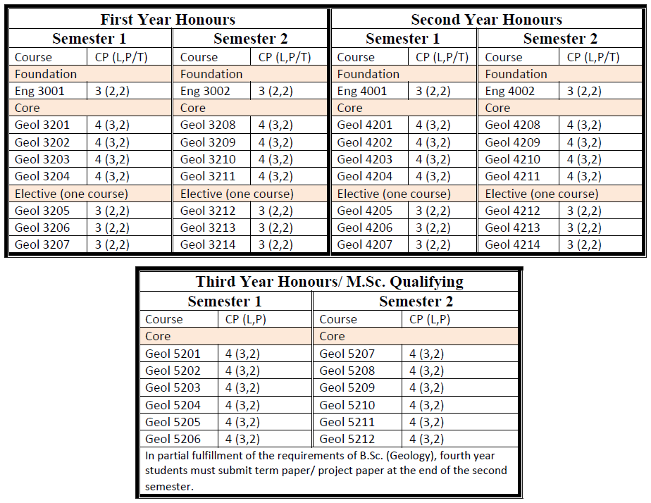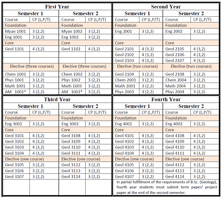 Students who passed second year with GPA ≥4 are eligible to attend B.Sc. (Hons) classes for three more years. After finished successfully, they are earned B.Sc. (Hons) degree majoring in Geology.