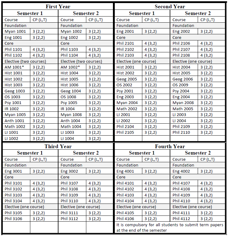 Students who passed second year with GPA greater than 4 are eligible to attend B.Sc. (Honours) classes for three more years. After finished successfully, they are earned B.Sc. (Hons) degree majoring in Philosophy.