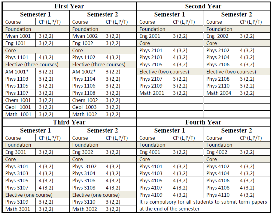 Students who passed second year with GPA 4 or GPA greater than 4 are eligible to attend B.Sc. (Honours) classes for three more years. After finished successfully, they earn B.Sc. (Hons:) degree specializing in Physics.
